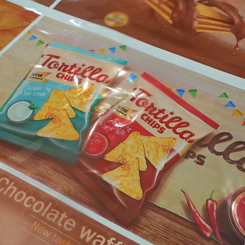 A tecnologia de impressão flexográfica permite que logotipos, informações de produtos, designs gráficos, códigos de barras e padrões decorativos sejam impressos em materiais de filme. Estes são seguidos por processos de laminação, fabricação de sacos ou corte para criar vários produtos de embalagem.
